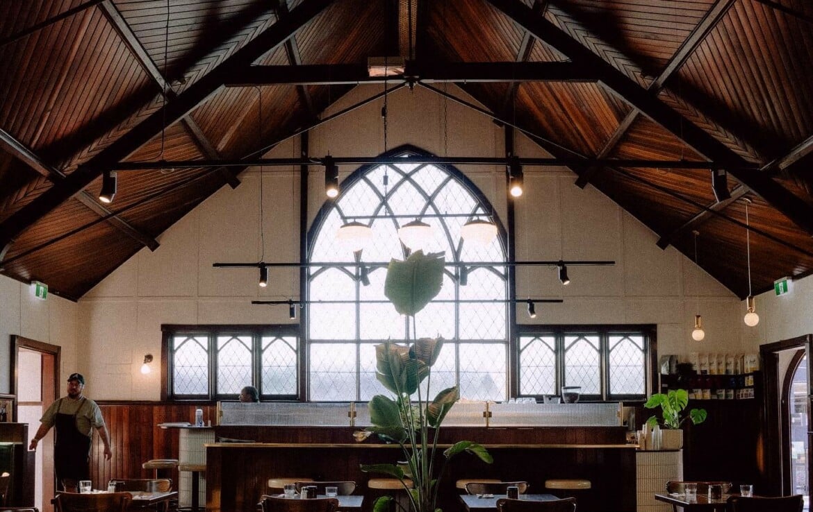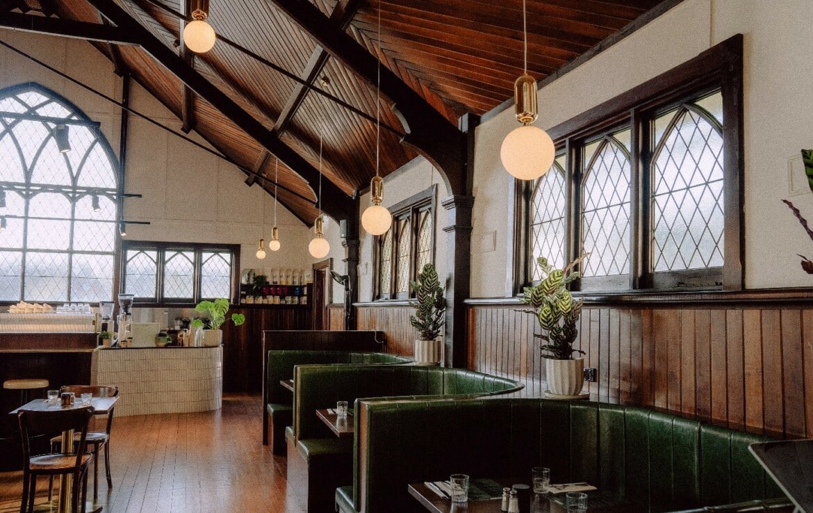 Step inside Stranger Coffeehouse & Kitchen, where history and modern hospitality unite in the heart of Balwyn. Housed within a breathtakingly restored 100-year-old church, this café is nothing short of extraordinary, a space where soaring ceilings, original stained-glass windows, and a design-led fit-out by Studio Argil preserve the building’s soul and sacred character, while creating a dining experience that feels truly one-of-a-kind.